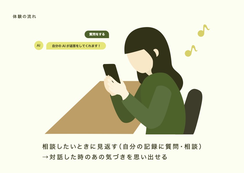 私自身が感じたそんな「メモを見返すことで得られる良い体験」を、他の人にもしてもらいたいと思ったのが出発点です。ただ、文章を書くのが苦手だったり、継続するのが難しかったりする人もいますよね。そこで「対話」という形にすれば、メモをとらなくても同じような体験ができるのではないかと考え、いまの形に行き着きました。